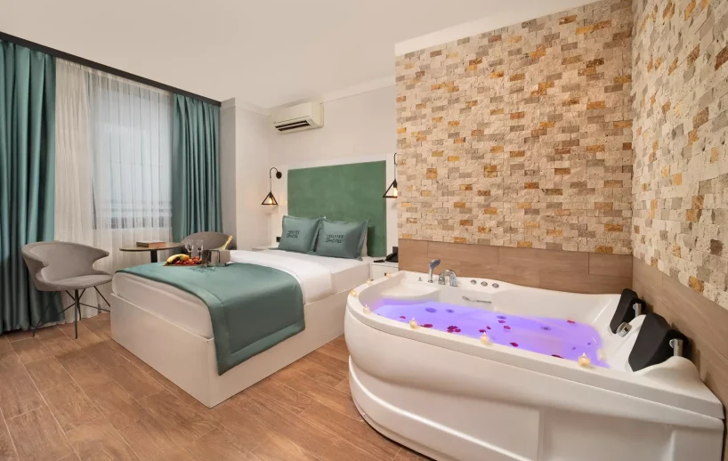 Jakuzili Suit Olarak hazırlanmış olan Odamızda ihtiyaç duyabileceğiniz, tüm gereçler fiyata dahil olarak sunulmuştur.